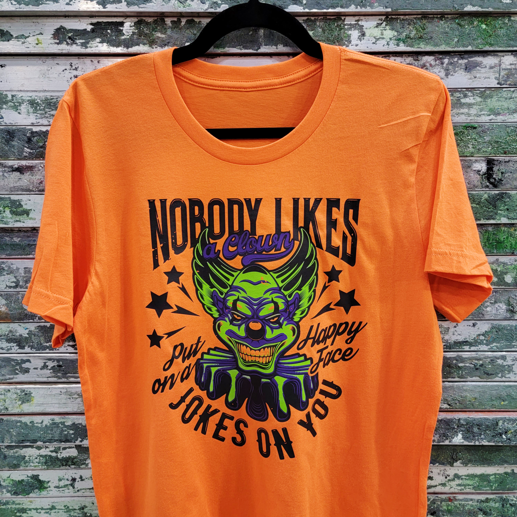 Some clowns are friendly… this one is not! Our ultra-bright, Howard Multi-Purpose Halloween clown design is unapologetically bold, printed on orange in super vibrant Bright Purple and Kiwi inks that jump off the shirt. Howard MP makes every hair, wrinkle, and sinister grin sharp and saturated.